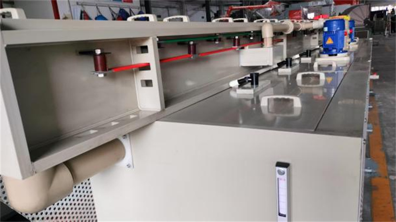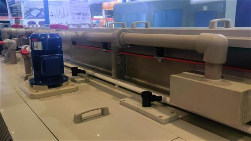 The entire line trough is welded by 20/25mmPPC acid-proof board. The trough is roughly divided into three parts: meter adjustment tank, electrolytic tank and cleaning saponification tank. The trough is heat-insulated and with protection. The metal painted panel cover ensures that the trough body is strong, durable, elegant, clean without water droplets and liquid leakage. All tank body water does not need to be discharged and recycled.